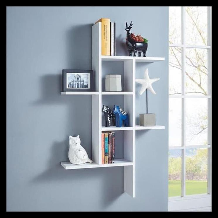 Rak dinding desain minimalis hemat ruang, sebagai pajangan tempat barang, buku, maupun perabot lainnya di ruang tamu, ruang tidur, dapur, hingga kamar .